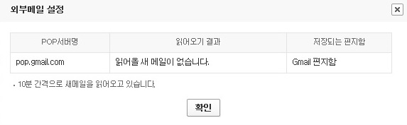 설정창을 닫고 다음메일의 받은 편지함의 편지함 리스트를 보면 "Gmail 편지함"이 추가되어 있을겁니다.