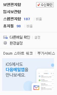 전 개인적으로 다음메일을 개인메일 메인으로 사용하고 있습니다.
